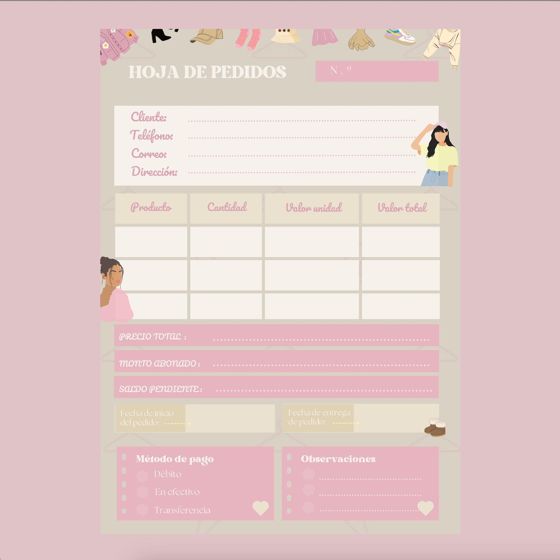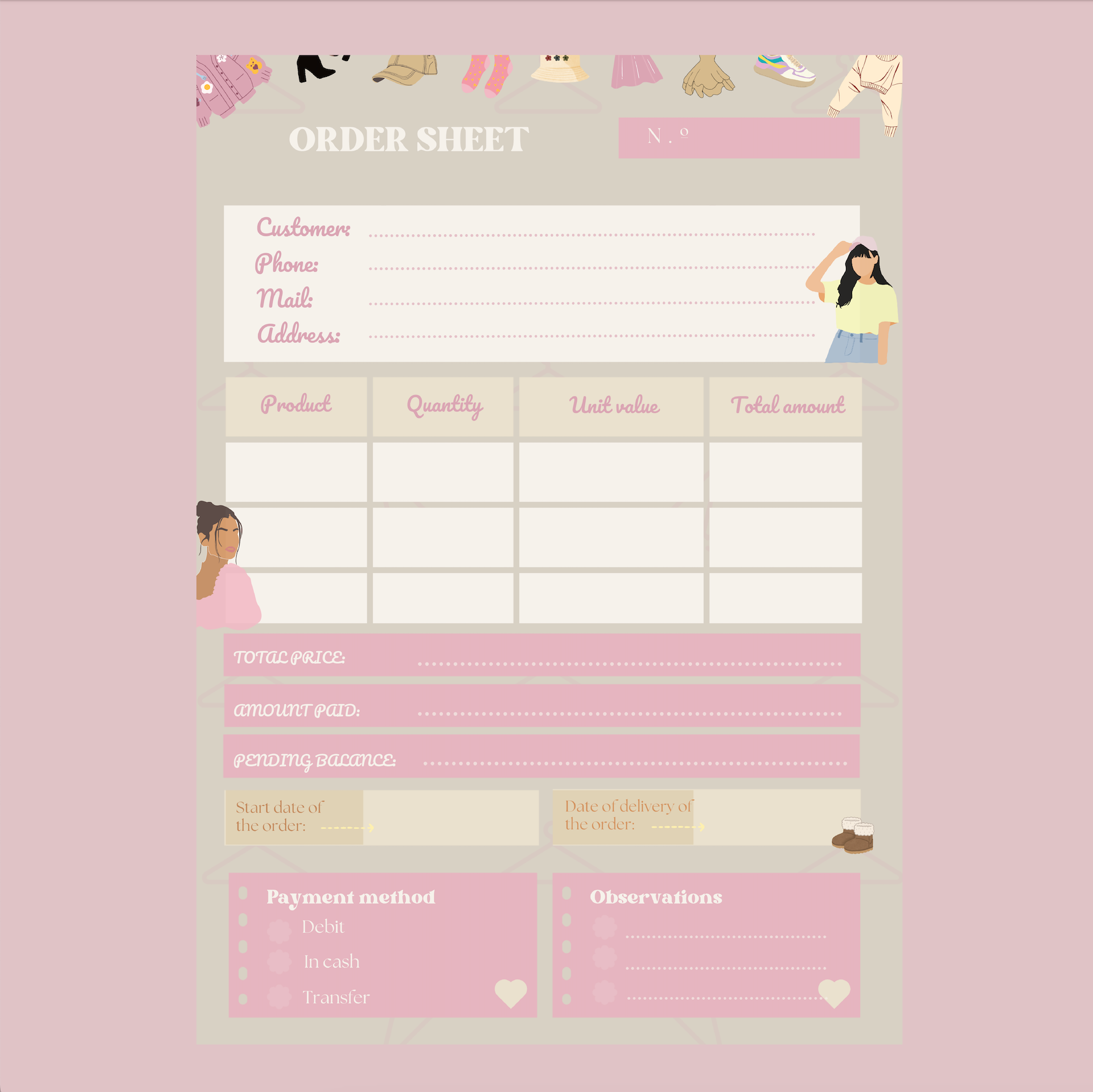 Give your customers a special experience with our charming Digital Order Sheet. This template is perfect for organizing and sending all the details of your customers' purchases in a clear and professional manner.